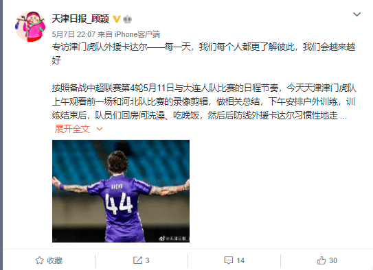 来源:直播车05-08 09:44直播车讯 北京时间昨天,天津津门虎的外援卡达尔接受了《天津日报》记者的采访,谈到了在天津的生活以及比赛的感受。