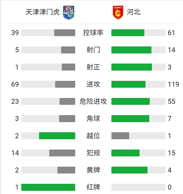 河北1-0天津津门虎 尹鸿博破门丛震飞铲染红