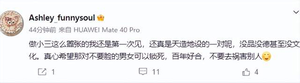 这位社交媒体名为Ashley的蒿俊闵前妻,在社交媒体上写道:“聚散皆有缘,离合总关情。我与蒿先生已于今年8月24日离婚。”这条看似比较中性的动态,其实是在为之后炮轰蒿俊闵做铺垫。随后,凌晨1点她又发布一条动态写道:“无知且没有道德感的人是永远不会对伤害别人感到愧疚的,你做了错事我原谅了你,且选择为顾全大局而隐忍。你不知道夹起尾巴做人还像跳梁小丑一般炫耀,往别人伤口上撒盐。”