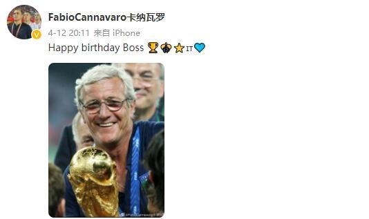 直播车4月13日讯今天是前国足、广州队主帅里皮的73岁生日,作为他的昔日弟子,广州队主帅卡纳瓦罗通过微博送上了祝福。