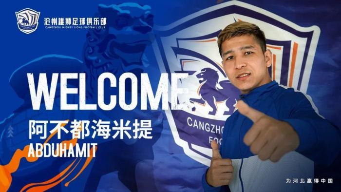 经友好协商,即日起阿不都海米提·阿不都格尼正式加盟沧州雄狮足球俱乐部。