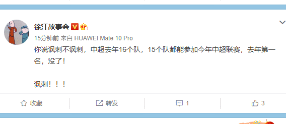 知名足球记者徐江在社交媒体上点评这次中国足协公布的准入名单,他表示:“你说讽刺不讽刺,中超去年16个队,15个队都能参加今年中超联赛,去年第一名,没了!讽刺!!!”