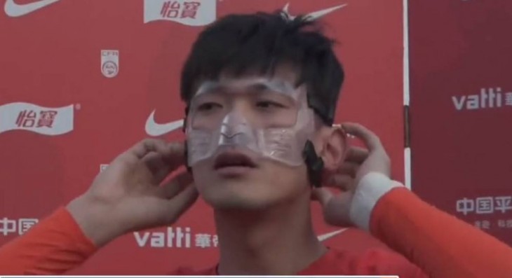 此前颜骏凌在去年中超联赛第二阶段上海德比中眼部受伤,随后进行了眼部手术,重新训练后开始戴着面具训练。