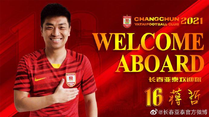 官方: 张瑀、毛开宇、蒋哲、王鹏加盟长春亚泰