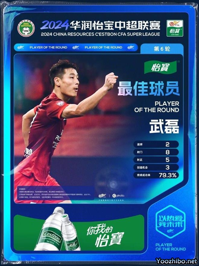 来源:直播车04-18 12:02直播车讯 北京时间4月17日,中超联赛官方微博宣布,武磊当选中超第6轮最佳球员。