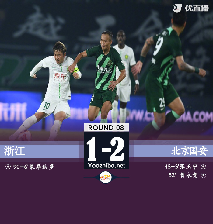 第51分钟,国安前场断球成功,曹永竞禁区内低射得手,北京国安2-0浙江。