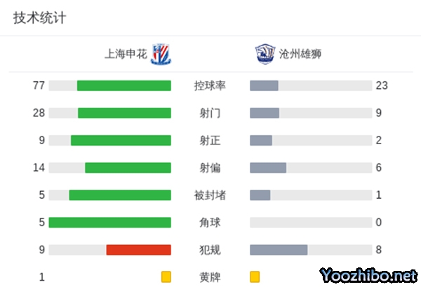 最终,申花主场4-0大胜沧州。
