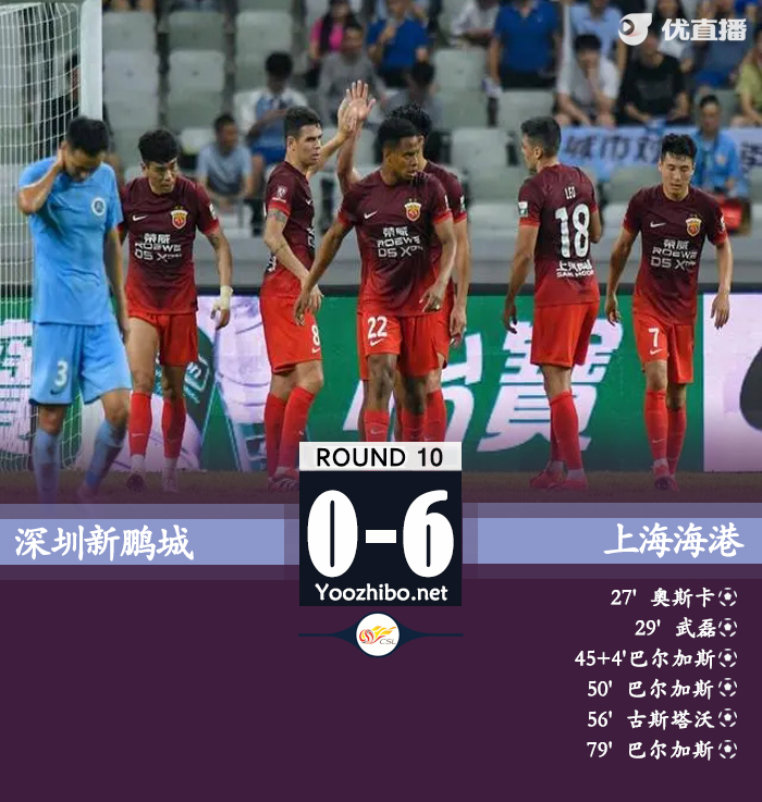 海港6-0深圳 巴尔加斯戴帽 武磊 古斯塔沃建功