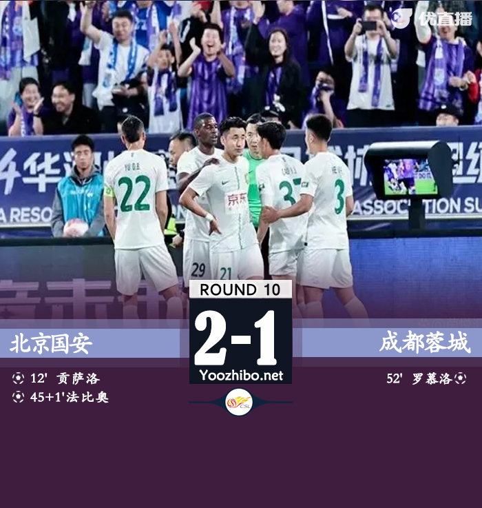 最终,国安主场2-1力克成都。