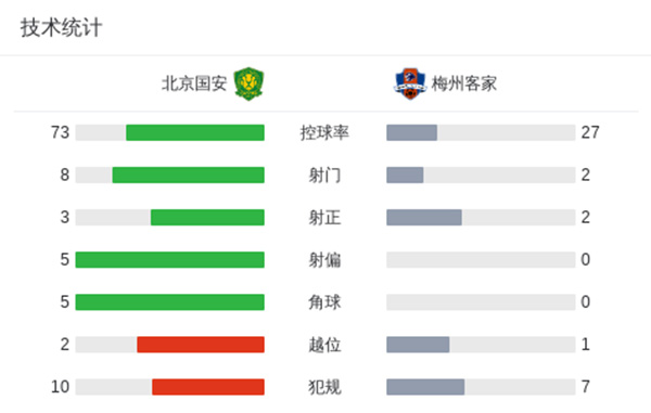 国安3-2十人梅州 潘喜明踩踏直红国安3人赛季首球