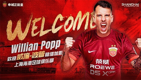 中超卫冕冠军海港租借威廉·波普 着眼亚冠赛事
