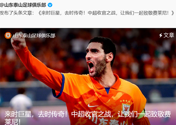 泰山队宣布费莱尼告别仪式时间,中超收官战要轮换,阵容有看点