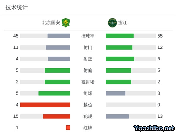 十人国安0-0浙江队遭遇两连平 张玉宁替补25分钟吃直红