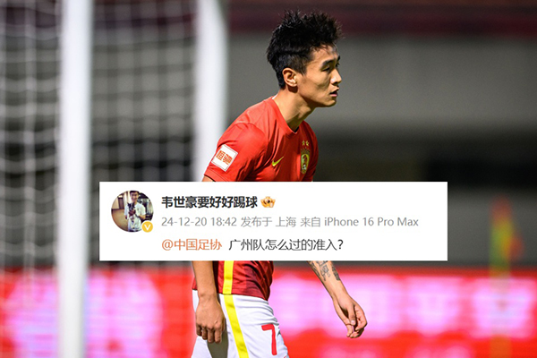 然而在足协清债名单公布后,多位球员在社媒公开发文质疑。率先发难的是29岁的当红国脚韦世豪,他直接@中国足协,质疑老东家广州队究竟是如何通过准入的。