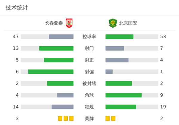第12分钟,李可前场右路断球后送出直塞,杨立瑜倒三角回传,法比奥推射空门得手,北京国安1-0长春亚泰。