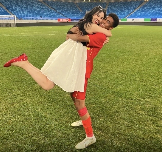 国少混血队长母亲再晒照!被1米9儿子抱起庆祝夺冠