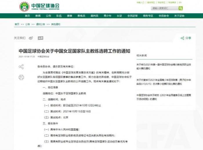 北青:一位前国脚对执教中国女足的意愿格外强烈
