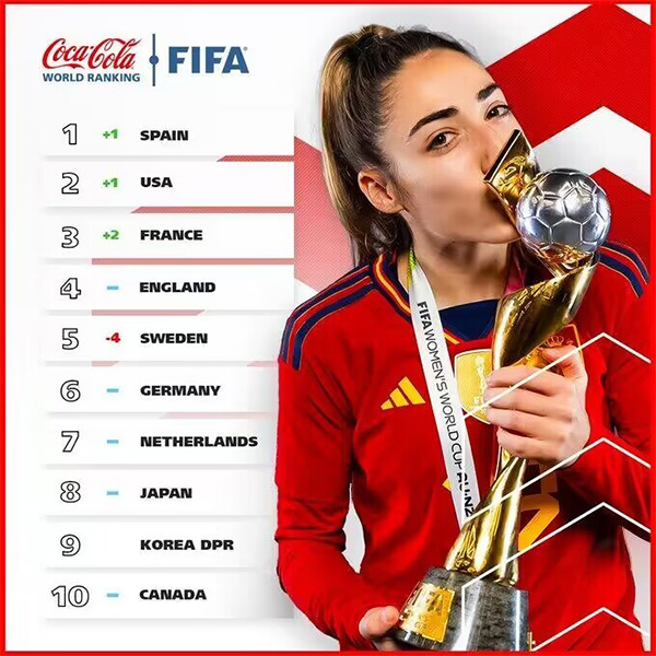 FIFA女足年终排名:中国跌至第19位!追平历史最低,最高曾排第4