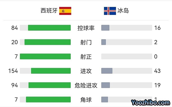 全场比赛结束,最终西班牙5-0冰岛。