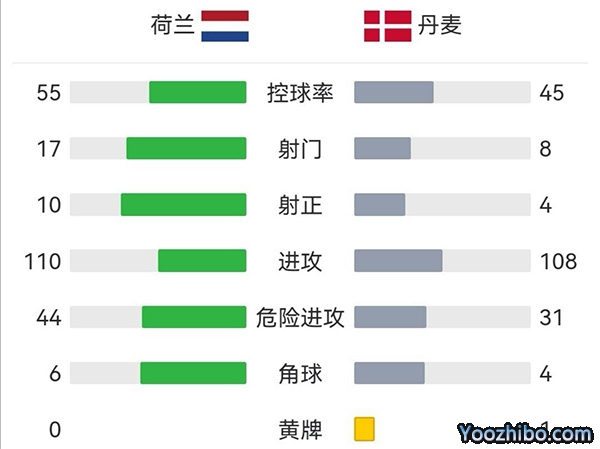 第36分钟,韦斯特高禁区内铲倒博古伊斯被出示黄牌并判罚点球,德佩主罚将球打进,荷兰3-1丹麦。