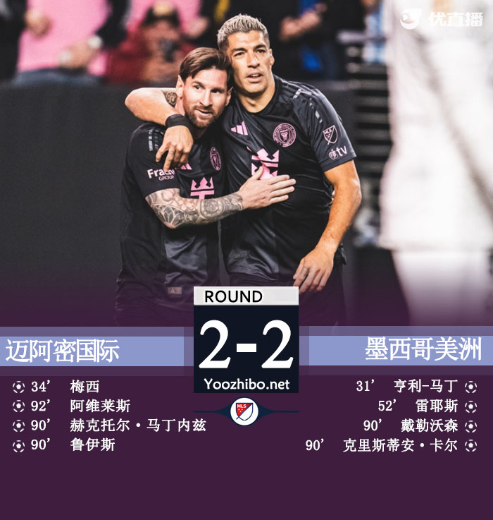 来源:直播车01-19 21:10 直播车讯 北京时间1月19日一场激动人心的俱乐部友谊赛中,迈阿密国际与美洲队展开了激烈对决。比赛第32分钟,亨利-马丁后点铲射破门,2分钟后,迈阿密国际反击,苏亚雷斯助攻梅西头球得分。第51分钟,迈阿密国际后场失误,雷耶斯得分再次领先,补时阶段,阿维莱斯头球绝平。点球大战中,双方经历六轮点球大战,最终迈阿密国际3-2,总比分5-4战胜美洲。
