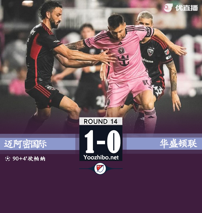 直播车讯:北京时间5月19日07:30,美职联迈阿密国际迎战华盛顿联的比赛,上半场双方攻势寥寥,克雷马斯基失单刀,半场结束,迈阿密国际0-0华盛顿联。下半场布斯克茨助攻坎帕纳补时抽射绝杀,最终迈阿密国际1-0华盛顿联。