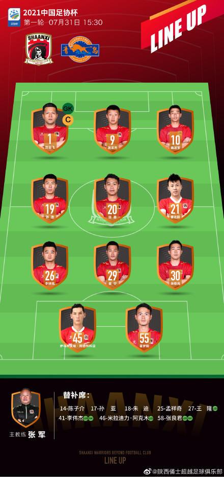 直播车讯 北京时间今天下午,2021赛季足协杯第一轮,在陕西俑士超越与青岛海牛的比赛中,42岁前国门刘云飞首发出场。