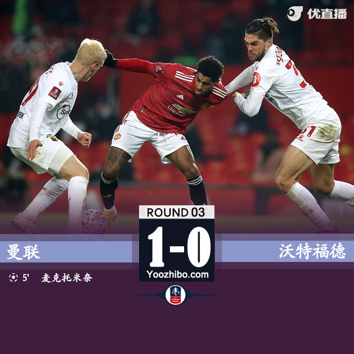 直播车1月10日讯 北京时间1月10日04:00,英格兰足总杯第3轮继续进行,曼联主场迎战沃特福德。上半场,麦克托米奈利用角球机会头球破门,拜利被迪恩-亨德森撞伤被换下。下半场,双方均没有创造出太好的得分机会。最终,曼联1-0小胜沃特福德,顺利晋级32强。