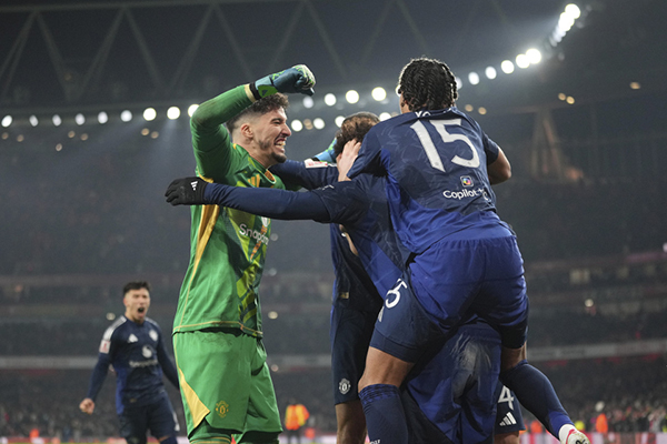 来源:直播车01-13 19:35直播车讯在北京时间1月13日进行的足总杯第3轮一场焦点战中,曼联在客场超过60分钟少打1人情况下顽强将阿森纳拖到点球大战,并且最终总比分6-4淘汰对手,晋级32强。